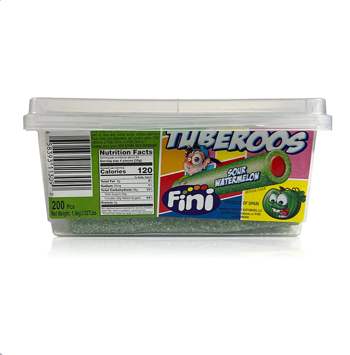 These are an all time favorite. Kids loves sour belts. Each tuberoo is covered in sour sugar and filled with white fondant. They will certainly deliver a swift punch to the palate with every bite.