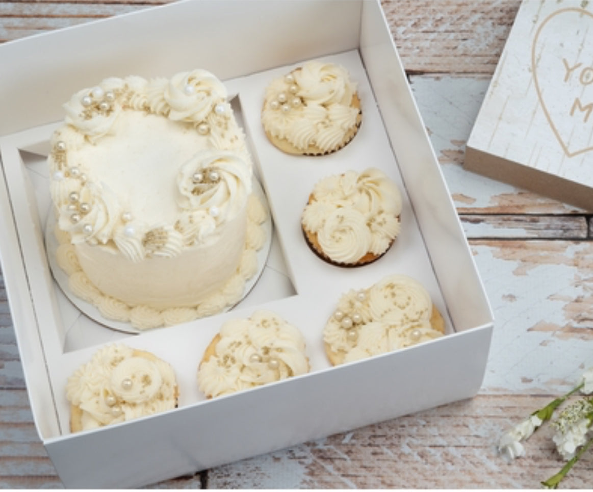 White Bento Box w/ 5 count Cupcake & Mini Cake